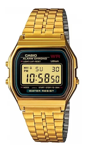 Marca Casio Linha Vintage Modelo A159 Gênero Sem gênero Cor da caixa Dourado Material da correia Aço inoxidável Cor do dial de horas Preto Cor do dial de minutos/segundos Preto Tipo de fecho Fivela de gancho Outras características
