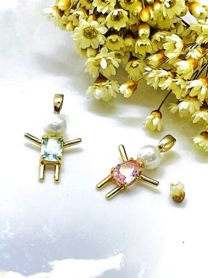 Pingente Folheado Pedra Com Pérola Menino Ou Menina