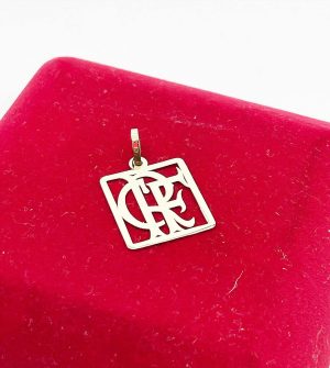 Pingente Retangular Placa Vazada CRF Flamengo 0.8g Ouro 18k