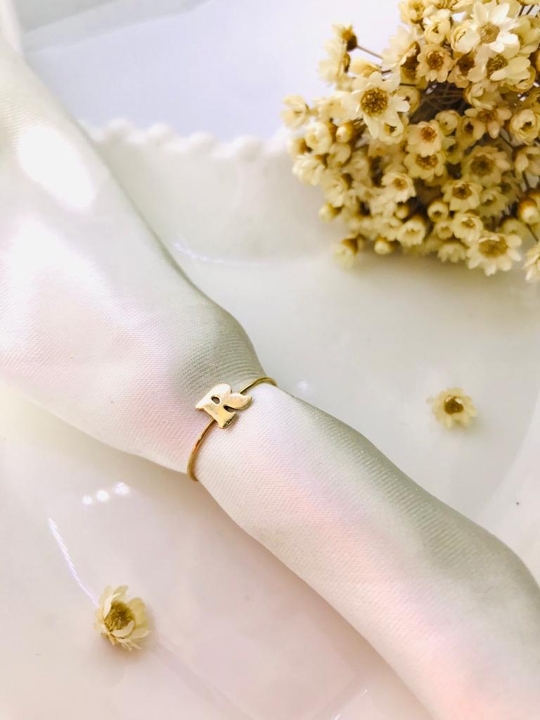ANEL DE OURO 18K EM CURVA COM PEDRA DE ZIRCÔNIO.