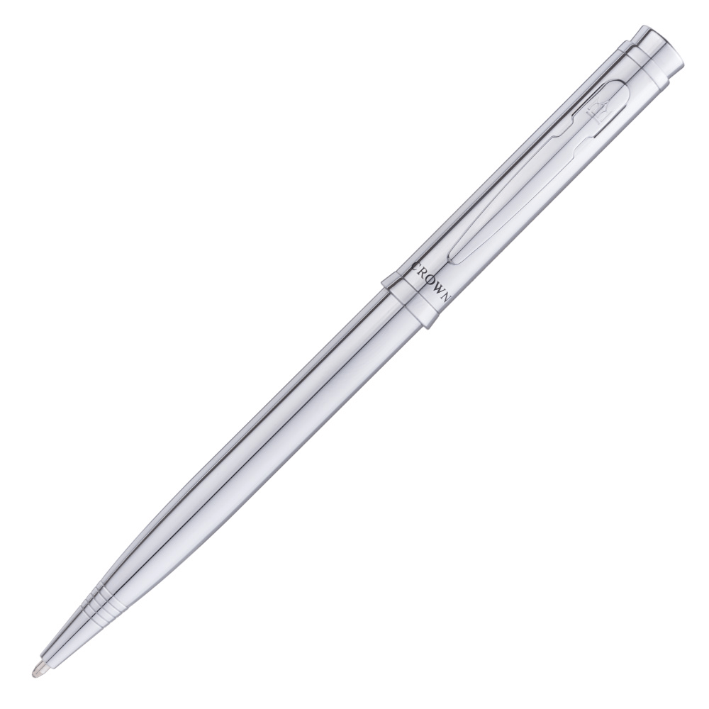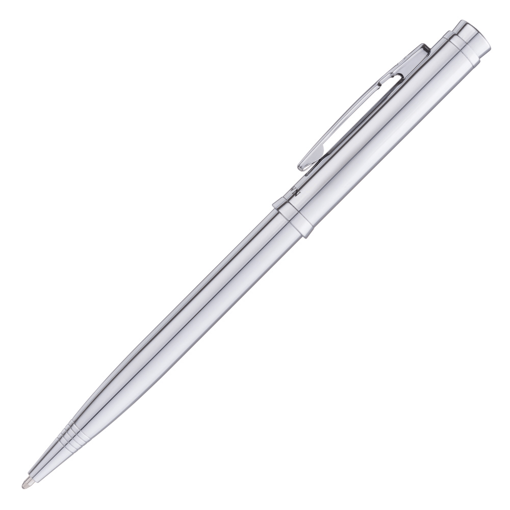 Prata com acabamento escovado e detalhes cromados tem sua escrita com conforto e maciez. Mecanismo de torção e com carga esferográfica padrão Cross