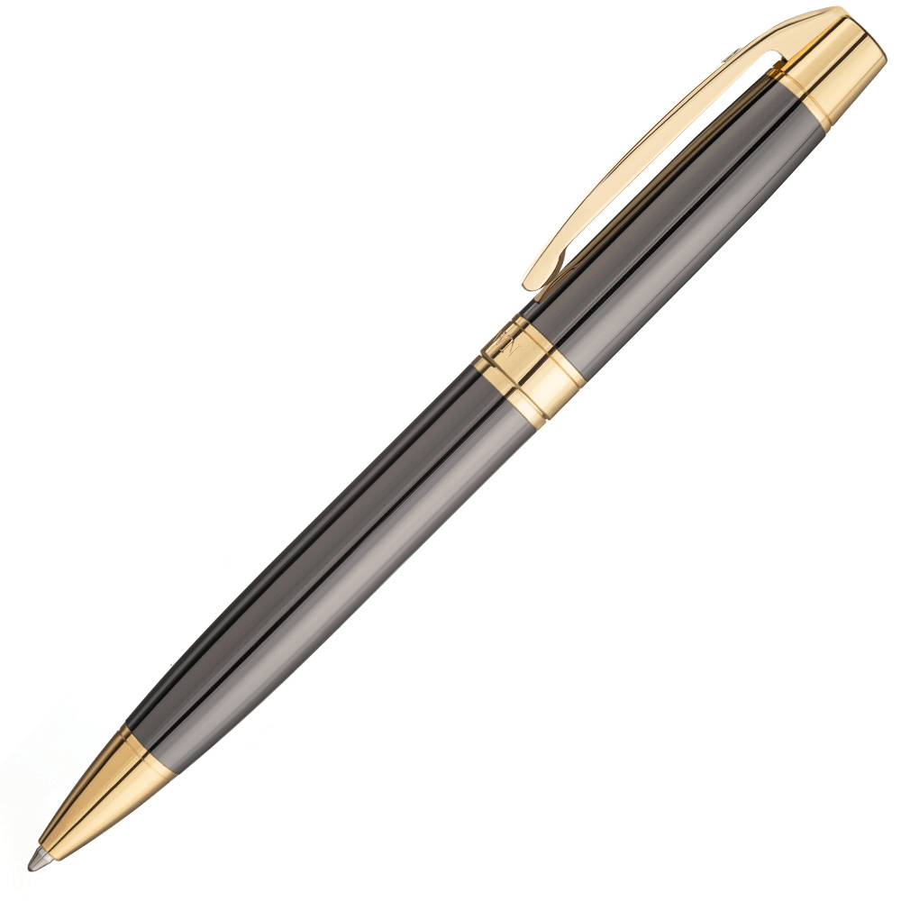 Fumê com detalhes dourados tem sua escrita com conforto e maciez. Mecanismo de torção e com carga esferográfica padrão Parker