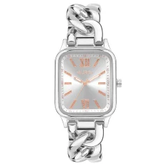 A poderosa linha Stones traz um novo modelo diferenciado, agora com números romanos e mix de pedras baguette bicolor aplicadas por dentro do vidro do relógio, o que traz mais segurança e modernidade para quem está usando. Ideal tanto para as mulheres que querem trazer um ponto de cor e brilho para os looks do dia a dia, tanto para compor qualquer visual à noite. Produto com caixa de metal e pulseira de aço inoxidável em banho dourado, mostrador de cor roxa, tamanho de caixa 42mm e resistência à água 50m.