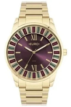 A poderosa linha Stones traz um novo modelo diferenciado, agora com números romanos e mix de pedras baguette bicolor aplicadas por dentro do vidro do relógio, o que traz mais segurança e modernidade para quem está usando. Ideal tanto para as mulheres que querem trazer um ponto de cor e brilho para os looks do dia a dia, tanto para compor qualquer visual à noite. Produto com caixa de metal e pulseira de aço inoxidável em banho dourado, mostrador de cor roxa, tamanho de caixa 42mm e resistência à água 50m.